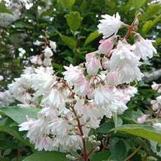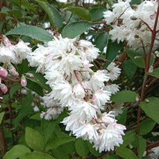 Jeune plant de DEUTZIA SCABRA BLANC, Arbuste Mellifère, floraison blanche très lumineuse en pompon. Pousse rapidement et peu exigeant. A intégré à une haie ou en isolé.