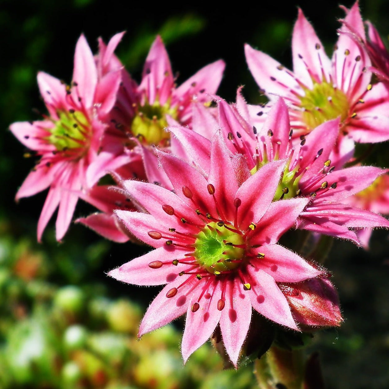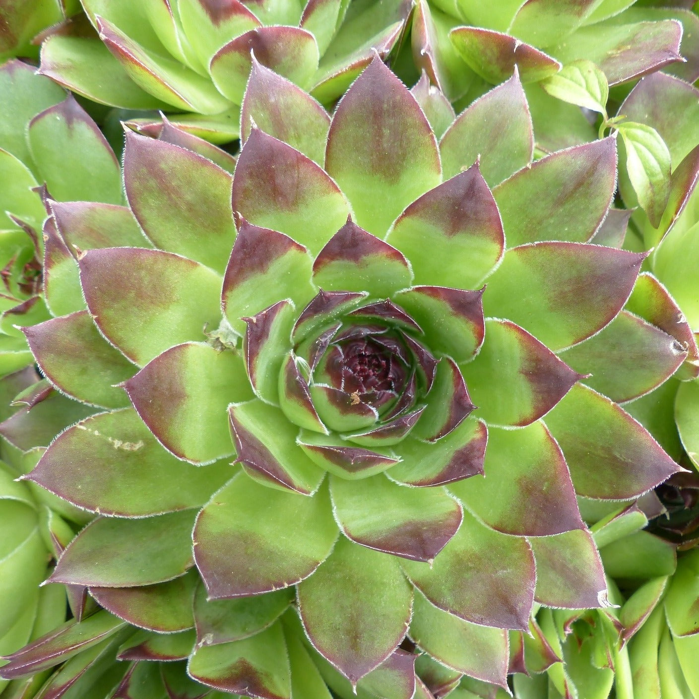 Plant de JOUBARBE DES TOITS - plante vivace très rustique formant un tapis de petites rosettes vertes teintées de rouge. Floraisons en étoile rose.